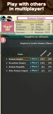 除了单人征服的壮丽体验,《History Conqueror II》更引入了激动人心的多人在线模式。您将有机会与来自世界各地的其他玩家一较高下,在实时对决中检验您的宏图伟略与战略深度。无论是联盟合作,还是殊死搏斗,这里都是您证明自己统治才能的舞台。准备好在《History Conqueror II》中留下您的不朽传奇了吗?