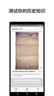 "历史日历"为您提供了多元化的沉浸式体验。通过精心编排的每日历史时间线,您可以图文并茂地浏览关键事件,并利用直观的筛选器快速定位感兴趣的人物、地点或特定历史时期。指尖轻触,主屏幕小部件即刻展现"历史上的今天",将重要的历史事实置于您的视野中心。此外,您还可以通过一系列趣味盎然的测验,挑战自己的历史知识储备,赢取"历史达人"的称号。对于那些特别触动您的故事,可将其加入专属收藏夹,并附上个人笔记,构建独一无二的知识库。